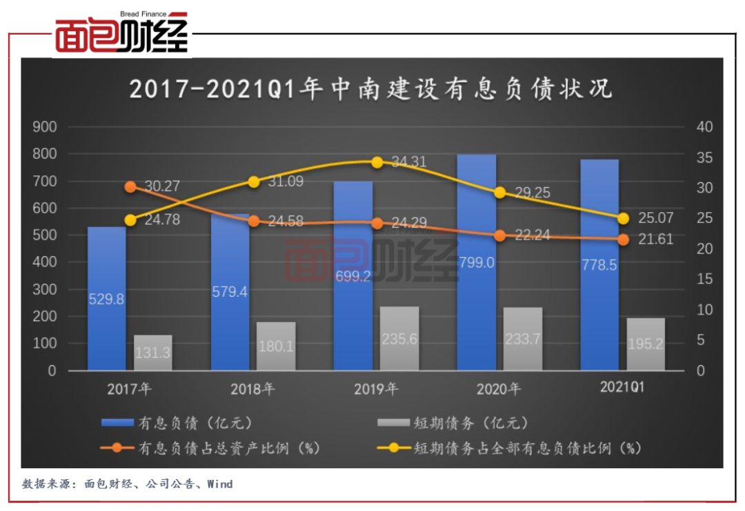圖5:2017-2021Q1年中南建設有息負債狀況