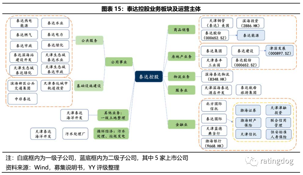 天保投控是天津保稅區(qū)主要的基建與國資運(yùn)營平臺,由天津港保稅區(qū)國有資產(chǎn)管理局100%控股,目前公司業(yè)務(wù)主要集中在交通運(yùn)輸、房地產(chǎn)開發(fā)和市政公用業(yè)務(wù),并投入較大資金參與金融機(jī)構(gòu)和投資企業(yè)。公司資產(chǎn)規(guī)模較大,但債務(wù)負(fù)擔(dān)重,市場爭議較大,考慮到其作為區(qū)域重要平臺,短期內(nèi)有一定安全邊際。