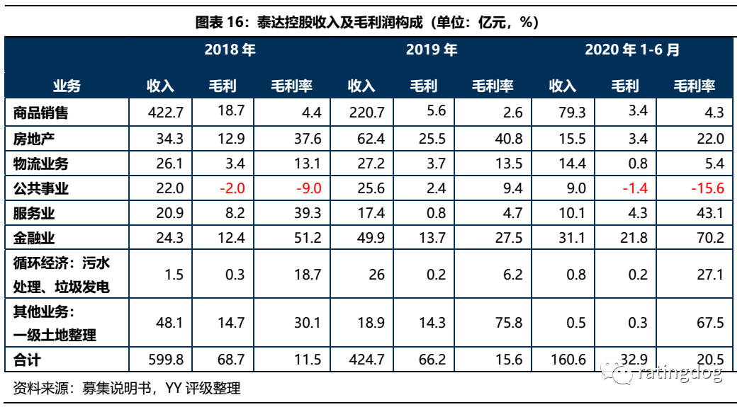 泰達(dá)控股為天津市級發(fā)債平臺之一,資產(chǎn)規(guī)模較大,涉足產(chǎn)業(yè)較多,以參控股的方式涉及商品銷售、金融、區(qū)域開發(fā)、公用事業(yè)、物流等多個(gè)板塊,業(yè)務(wù)屬性上屬于產(chǎn)投平臺,但公司同時(shí)承擔(dān)著天津?yàn)I海新區(qū)內(nèi)部分功能區(qū)的水電氣熱等能源供應(yīng)、公共交通和市政道橋等基礎(chǔ)設(shè)施的建設(shè)和運(yùn)營,因此仍劃分為城投。公司財(cái)務(wù)杠桿很高(75.26%),尤其是短期償債壓力很大,截至20Q3短債超830億,而貨幣資金僅219億元。整體來看,公司經(jīng)營屬性強(qiáng),公益性偏弱,融資壓力很大。