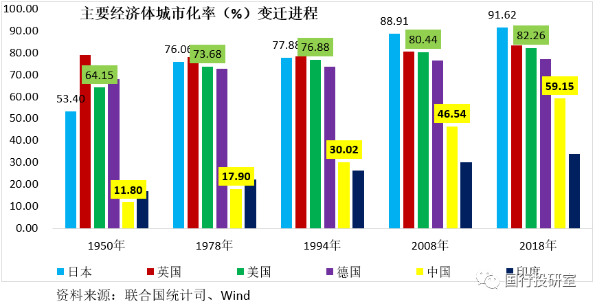 顯然四十余年的歷史進程中,3.50億鄉村人口離開鄉村參與了中國的城市化與工業化進程,并伴隨著土地金融制度的崛起。但是與發達經濟體相比,這一過程并未結束,我國的城鎮化率仍有不少差距,未來仍有較大提升空間。