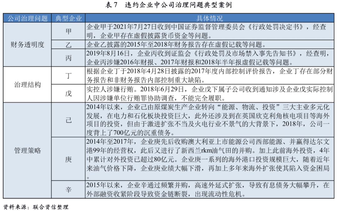 國內債券市場信用違約中公司治理問題屬于高發性因素,將ESG中公司治理因素的納入可以增強信用違約中風險預警作用。