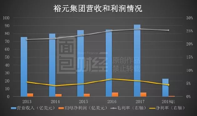 2017年裕元集團營收為91.21億美元,同比增長7.6%,歸母凈利潤為5.19億美元,同比下降2.87%。