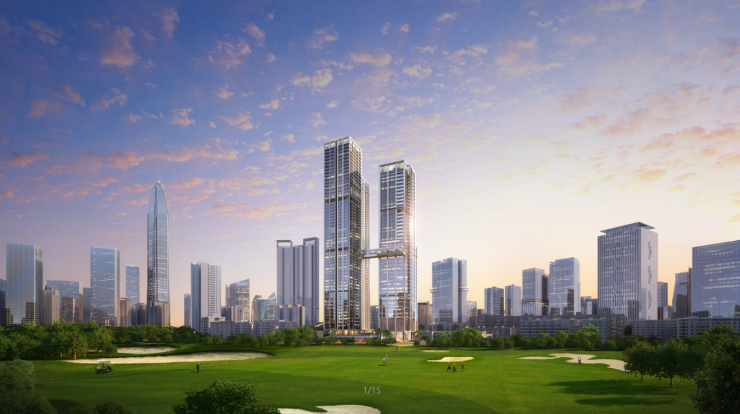 在產品的打磨上,九曜公館打造了100米空中連廊和深圳首個高空透明泳池,可以俯瞰整個高爾夫球場和香蜜湖片區,是人與自然和諧共生的最佳居所。