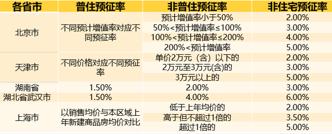 為確保稅款平穩(wěn),均勻的流入國(guó)庫(kù),在房地產(chǎn)預(yù)售發(fā)生時(shí)即采取土增稅預(yù)征,通常按銷(xiāo)售收入的一定比例征收(具體比例各地不一)。