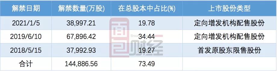 而這些為了收購資產(chǎn)或籌集資金發(fā)行的股票,大量將在接下來的14個月之內(nèi)解禁,解禁股份數(shù)超過10億,在公司總股本中的占比超過50%。以下為根據(jù)公開數(shù)據(jù)整理的公司股份解禁時間表: