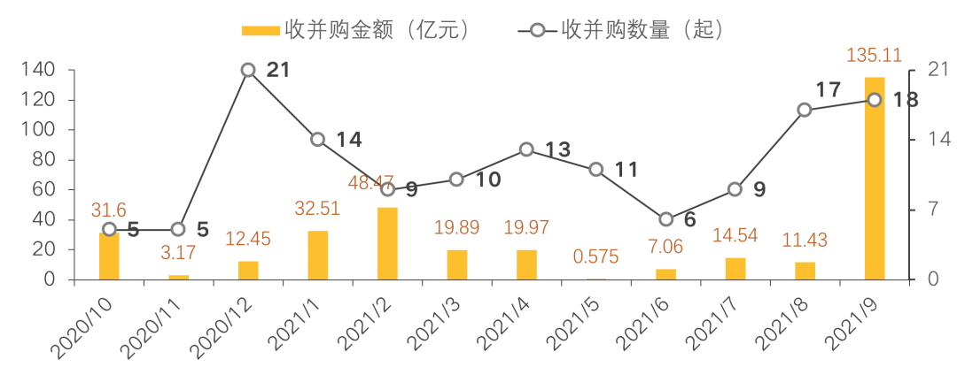 在資本市場(chǎng)開(kāi)始出現(xiàn)回調(diào)的過(guò)程中,市場(chǎng)頻發(fā)企業(yè)大宗收并購(gòu)事件。根據(jù)克而瑞物管&中物研協(xié)監(jiān)測(cè),本月上市物業(yè)服務(wù)企業(yè)對(duì)外公告收并購(gòu)事項(xiàng)新增18起,交易金額135.11億元。