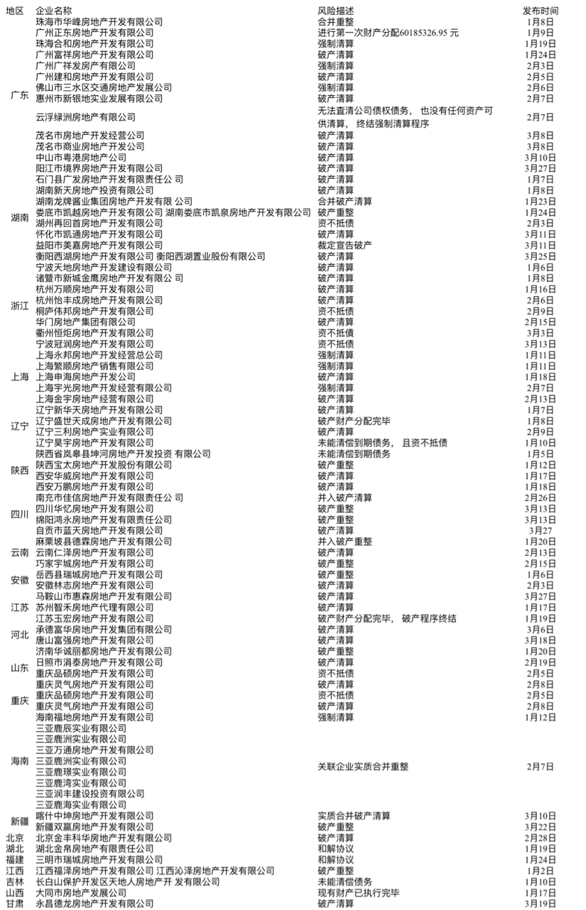 媒體披露的數(shù)據(jù)顯示,從2019年開年到2019年12月12日,宣告破產(chǎn)的房企為492家。另據(jù)金角財(cái)經(jīng)不完全統(tǒng)計(jì)數(shù)據(jù),2020年元旦到2020年2月,僅僅兩個(gè)月,房地產(chǎn)行業(yè)內(nèi)就有70家房企有破產(chǎn)文書發(fā)布。睿和智庫也搜集了2020年部分房企破產(chǎn)的信息,見下表: