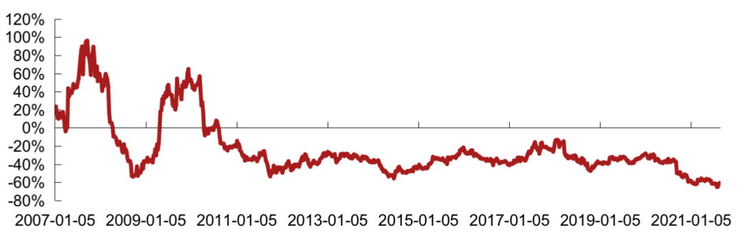 3)相對PB=(克而瑞內房股領先指數成分股整體PB/香港地產股大樣本整體PB-1)*100%