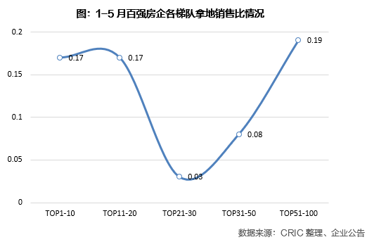 03 1-5月百強拿地銷售比0.15 銷售21-30強企業投資停滯