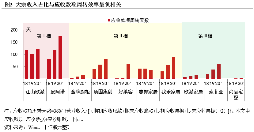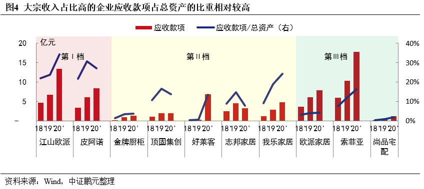 大宗模式主要表現(xiàn)為和房企合作,其業(yè)務實質偏向工程施工,普遍存在墊資現(xiàn)象。大宗業(yè)務屬于批量供貨,規(guī)模、品質略遜于傳統(tǒng)零售貨品,一般雙方在合同中約定毛利率或凈利率,以保證定制家居企業(yè)的盈利空間。大宗業(yè)務一般以票據(jù)結算,商票居多,部分房企在開具商票時會給予一定額度的優(yōu)惠。其合作方式主要有4種:1、“地產+家居”模式。雙方合資成立子公司,由定制家居企業(yè)控股,優(yōu)先向合作房企供貨。如恒大2017年大規(guī)模進軍家居產業(yè),并在河南蘭考縣成立蘭考恒大家居聯(lián)盟產業(yè)園,與索菲亞、皮阿諾等企業(yè)成立合資公司,股權結構為恒大旗下主體與定制家居企業(yè)分別持股40%、60%。2、“歐派家居”模式。如歐派家居利用遍布全國的門店優(yōu)勢,通過當?shù)亟涗N商去拓展客戶,但以歐派家居總部的名義與房企簽訂合同。3、代理模式。如志邦家居拓展大宗業(yè)務時,部分項目直接與工程代理商簽訂合同,不和房企對接,采用成本加成法結算。4、一般模式。與房企簽訂戰(zhàn)略合作協(xié)議,涉及具體房地產項目仍需通過招投標等方式競得。綜上,模式1偏向于戰(zhàn)略合作、長期合作,業(yè)務量更有保證;模式2充分利用經銷商了解當?shù)厥袌黾翱蛻舻膬?yōu)勢,達到拓展業(yè)務的目的;模式3業(yè)務量的獲取、貨款回收均依賴工程代理商。相比之下,模式1、2的回款風險略高于模式3。