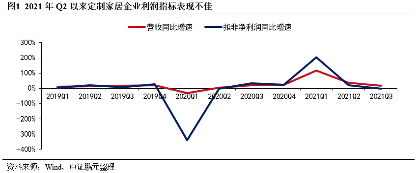 2021年下半年以來,藍光發(fā)展、陽光100、恒大集團、花樣年等房企先后爆出流動性風險事件,10月份地產美元債大跌,多個房企主體評級被下調,隨后江山歐派、皮阿諾等定制家居企業(yè)被爆持有的恒大商票逾期,定制家居企業(yè)一時被負面信息包圍。再觀其財務數(shù)據(jù),在地產政策收緊導致行業(yè)景氣度下降及原材料漲價等因素影響下,定制家居企業(yè)出現(xiàn)了明顯的“增收不增利”特征。
