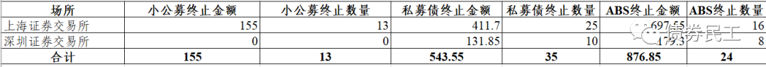 從私募債產品來看,單只債券最大終止金額為30億元,為蘭州建設投資(控股)集團有限公司2021年非公開發(fā)行公司債券和重慶邁瑞城市建設投資有限責任公司2021年面向專業(yè)投資者非公開發(fā)行短期公司債券。最小終止金額為4億元,為孝感市高創(chuàng)投資有限公司2021年面向專業(yè)投資者非公開發(fā)行項目收益專項公司債券。
