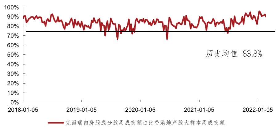 備注:香港地產股大樣本篩選邏輯:主業為地產,業務主要來自大陸或者大陸是重要的發展區域,剔除純投資型公司,不含物業管理及其他地產服務公司,樣本數量共計122家