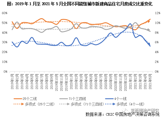 基于供應穩中有增的分析邏輯,隨著供應放量,預計2021年下半年成交有望持續小幅增長或與持穩,而三四線城市因需求透支疊加購買力下降,短期內成交或將保持回落趨勢。
