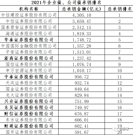 一、2021年企業(yè)債、公司債總體排名
