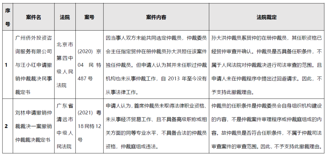 但最新的司法判決中也存在法院認為,仲裁員的任職條件不屬于法院的司法審查范圍,是仲裁委員會自身組織機構建設的內容,仲裁委對仲裁員的資格進行了確認,則可認定仲裁員符合任職條件。