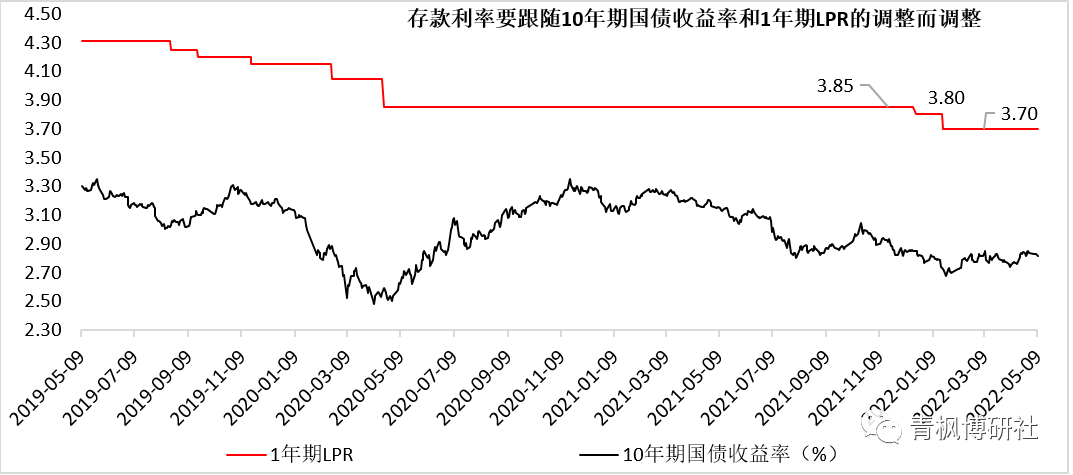 存款利率的變化≈1年期LPR調(diào)整幅度或10年期國(guó)債收益率趨勢(shì)性變化(2)