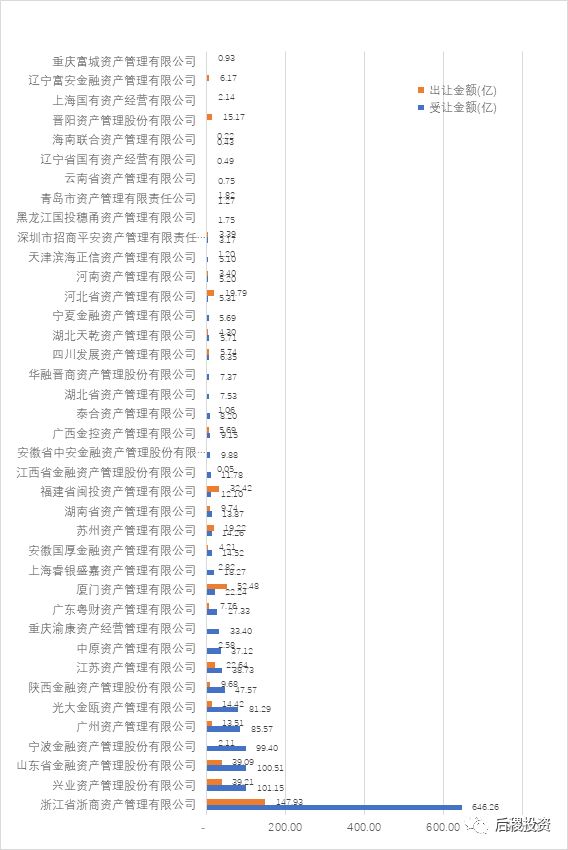 地方AMC作為不良資產(chǎn)市場(chǎng)的主要參與者,相較于四大AMC,市場(chǎng)上關(guān)于他們的運(yùn)行情況,鮮見(jiàn)相關(guān)的公開(kāi)運(yùn)營(yíng)數(shù)據(jù),這對(duì)廣大投資者了解市場(chǎng)趨勢(shì)是極為不利的,為此,筆者整理了2018年全國(guó)各地方AMC公開(kāi)受讓與出讓的金融債權(quán)數(shù)據(jù),通過(guò)多維度的統(tǒng)計(jì)分析(地方AMC及其控股的地級(jí)平臺(tái)子公司分析時(shí)按一個(gè)主體),以求能勾勒出地方AMC的立體輪廓,為各市場(chǎng)主體做出投資參考。