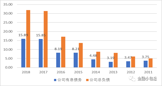 圖四:ST中新公司總負債和有息債務規模趨勢