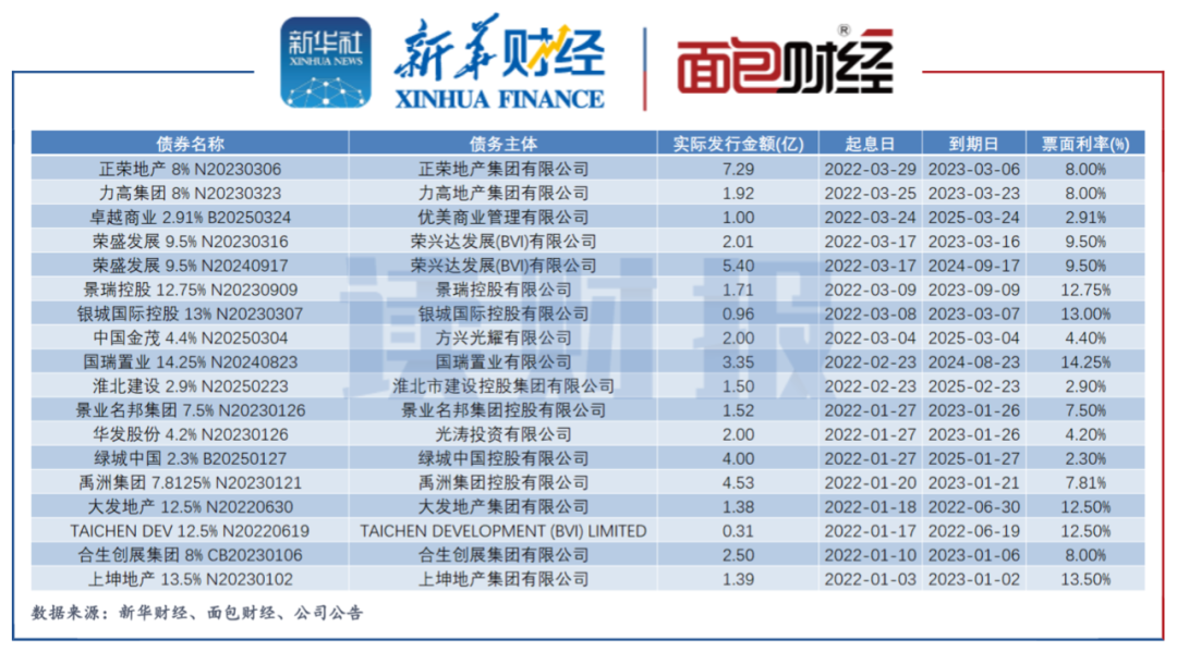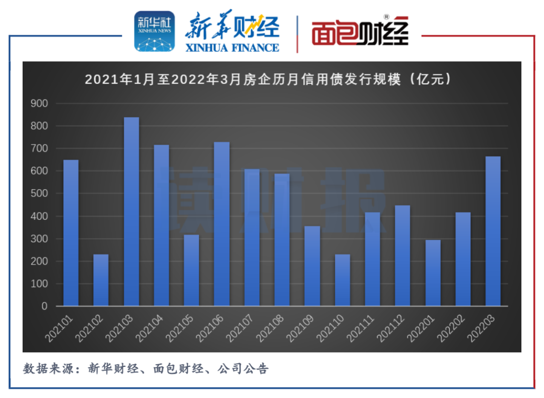 新華財(cái)經(jīng)和面包財(cái)經(jīng)研究員統(tǒng)計(jì)了房地產(chǎn)開發(fā)企業(yè)2022年一季度境內(nèi)信用債和境外美元債的發(fā)行情況。