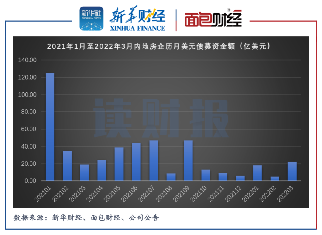 圖3:2021年1月至2022年3月內(nèi)地房企歷月美元債募資金額