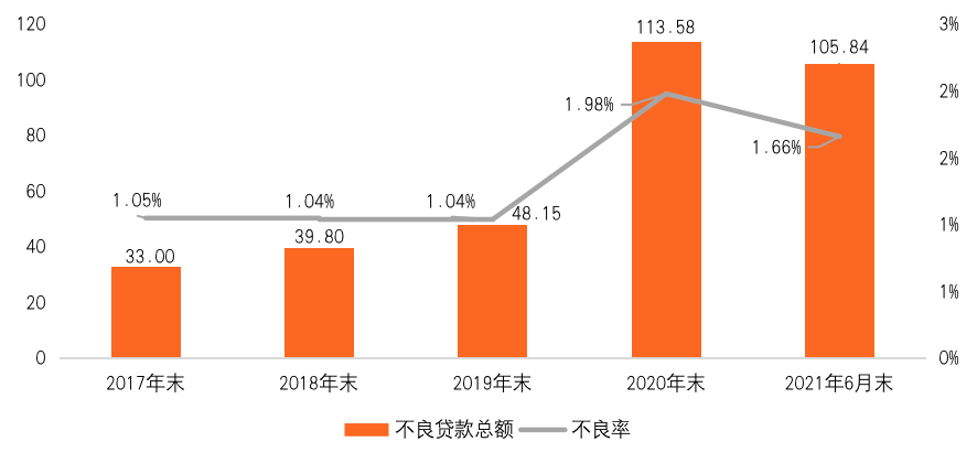 一、利潤與資產(chǎn)質(zhì)量好轉(zhuǎn),個(gè)人房貸占比仍超標(biāo)(一)上半年歸母凈利潤增長18%,不良率降至1.66%2021上半年,徽商銀行的歸母凈利潤繼續(xù)保持增長態(tài)勢。從2017上半年的37.80億元增長至2021上半年的61.95億元,5年間增幅超60%。從同比增速來看,除了受疫情影響的2020上半年增速僅為6.71%,其余各期的歸母凈利潤增速均在10%以上,其中2021上半年增速高達(dá)18%,盈利能力在快速恢復(fù)。圖 2:徽商銀行2017上半年-2021上半年歸母凈利潤情況(單位:億元,%)資料來源:徽商銀行2017-2021半年報(bào),零壹智庫整理與盈利能力一同恢復(fù)的還有資產(chǎn)質(zhì)量。由于承接了原包商銀行北京、深圳、成都、寧波四家分行的不良貸款,再疊加全球新冠疫情和安徽省特大洪澇災(zāi)害的影響,徽商銀行2020年貸款不良率陡升至1.98%。2021上半年,徽商銀行重點(diǎn)投身于風(fēng)險(xiǎn)防控,加快清收處置,不良率降至1.66%,較2020年末下降了0.32個(gè)百分點(diǎn)。然而,相較于2019年及以往年度的表現(xiàn),徽商銀行2021上半年的不良率仍處于較高水平,這也有銀行自身的原因。從貸款結(jié)構(gòu)來看,占貸款總額近六成的公司貸款不良率較高,2021上半年達(dá)到2.29%,而同期不良率僅為0.82%的零售貸款占比卻不足四成。此外,7月末,徽商銀行還因申請對紫光集團(tuán)破產(chǎn)重整而備受關(guān)注,高達(dá)70億元的債務(wù)違約也對該行的資產(chǎn)質(zhì)量造成較大沖擊。圖 3:徽商銀行2017-2021年不良貸款情況(單位:億元,%)資料來源:徽商銀行財(cái)報(bào),零壹智庫整理(二)零售存貸款規(guī)模擴(kuò)大,個(gè)人住房貸款占比超標(biāo)徽商銀行堅(jiān)持“服務(wù)地方經(jīng)濟(jì)、服務(wù)中小企業(yè)、服務(wù)廣大民眾”的市場定位,在零售業(yè)務(wù)上持續(xù)發(fā)力。零售存款及零售貸款余額持續(xù)穩(wěn)步增長,2021年上半年分別增長了451.93億元和120.43億元,增幅分別達(dá)19.19%和5.47%。