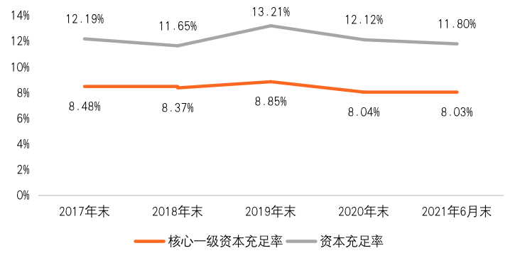 2021下半年,徽商銀行供應(yīng)鏈金融業(yè)務(wù)繼續(xù)創(chuàng)新發(fā)展。9月18日,徽商銀行與供應(yīng)鏈票據(jù)市場頭部企業(yè)簡單匯聯(lián)合推出全國首例“供應(yīng)鏈票據(jù)+擔(dān)保”融資模式,在供應(yīng)鏈票據(jù)融資環(huán)節(jié)中引入蕪湖民強(qiáng)擔(dān)保公司,通過第三方擔(dān)保滿足銀行授信審批要求。在該模式下,商票貼現(xiàn)速度慢、擔(dān)保措施難落實(shí)等問題得到解決,同時(shí),銀行能夠以低于市場平均價(jià)格30bp-50bp的貼現(xiàn)利率為中小企業(yè)提供票據(jù)融資,有效提升了融資便利性,降低了企業(yè)融資成本。值得關(guān)注的是,2021年7月,徽商銀行申報(bào)的“基于區(qū)塊鏈技術(shù)的綠色信貸服務(wù)”項(xiàng)目入選安徽省金融科技創(chuàng)新監(jiān)管工具第一批創(chuàng)新應(yīng)用。《金融科技創(chuàng)新應(yīng)用聲明書》顯示,該項(xiàng)目將綜合運(yùn)用區(qū)塊鏈、大數(shù)據(jù)、人工智能等技術(shù),構(gòu)建應(yīng)收賬款融資服務(wù)平臺(tái),通過應(yīng)收賬款簽發(fā)、流轉(zhuǎn)、拆分、兌付等服務(wù),盤活企業(yè)資產(chǎn),提升新能源產(chǎn)業(yè)鏈上企業(yè)的資金流動(dòng)性,助力綠色經(jīng)濟(jì)發(fā)展。該項(xiàng)目于9月27日正式運(yùn)營,預(yù)計(jì)服務(wù)中小微企業(yè)500家。三、內(nèi)控風(fēng)險(xiǎn)暴露:資本充足率下滑,業(yè)務(wù)違規(guī)多次被罰8月上旬,銀保監(jiān)會(huì)發(fā)布的銀行業(yè)保險(xiǎn)業(yè)主要監(jiān)管指標(biāo)數(shù)據(jù)顯示,2021年二季度末,商業(yè)銀行核心一級資本充足率為10.50%,資本充足率為14.48%。相比之下,徽商銀行2021年6月末的核心一級資本充足率8.03%,資本充足率11.80%,分別較2020年末下降0.32個(gè)百分點(diǎn)和0.01個(gè)百分點(diǎn)。這一表現(xiàn)不僅遠(yuǎn)低于行業(yè)平均水平,從近5年總體變化趨勢來看,還在逐漸逼近監(jiān)管的紅線。圖 6:徽商銀行2017-2021年資本充足率情況資料來源:徽商銀行財(cái)報(bào),零壹智庫整理徽商銀行資本金緊張的背后,一方面是源于不良資產(chǎn)大幅增加,加大了撥備計(jì)提和處置力度;另一方面則是資本金補(bǔ)充面臨難題。作為補(bǔ)充資本金的一大重要渠道,徽商銀行多年前就在計(jì)劃A股IPO,但近年來發(fā)生的股東爭端和股權(quán)糾紛等問題,卻成為其回歸A股的一大阻礙。徽商銀行早在2015年就提交了A股上市申請,經(jīng)歷三年排隊(duì),卻在2018年2月因股東和管理層發(fā)生爭議而撤銷;2018年末,在進(jìn)行了高管變動(dòng)和董事會(huì)換屆之后,徽商銀行重啟了A股上市計(jì)劃,但股東之間的紛爭仍未消解。徽商銀行大股東中靜新華資產(chǎn)管理有限公司(簡稱“中靜新華”)、中靜四海實(shí)業(yè)有限公司(簡稱“中靜四海”)與杉杉控股、杉杉集團(tuán)在2019年8月簽訂了《關(guān)于轉(zhuǎn)讓徽商銀行股份有限公司股份及中靜四海實(shí)業(yè)有限公司股權(quán)之框架協(xié)議》,但2020年6月,“中靜系”和“杉杉系”因協(xié)議履行發(fā)生爭議而互訴公堂,案件目前仍在審理中。2021年3月,徽商銀行發(fā)布公告稱,延長A股發(fā)行議案,申請A股發(fā)行15億股。為確保A股發(fā)行工作能繼續(xù)開展,該行擬將延長A股發(fā)行方案的有效期,即延長期限自2021年6月30日起至2022年6月29日止。(二)罰單頻現(xiàn)、高管頻換,折射內(nèi)部治理問題除了資本金和股權(quán)的問題,徽商銀行內(nèi)部治理也有待完善。零壹智庫根據(jù)銀保監(jiān)會(huì)官網(wǎng)披露的通知進(jìn)行統(tǒng)計(jì),2021年初至9月末,該行已有10余家分支機(jī)構(gòu)被銀保監(jiān)部門處罰,合計(jì)罰款金額500多萬元,20多名相關(guān)負(fù)責(zé)人獲得警告、罰款、禁止終身從事銀行業(yè)工作等不同程度的處罰,具體違規(guī)事實(shí)包括:違規(guī)發(fā)放流動(dòng)資金貸款、違規(guī)管理使用印章、未按規(guī)定進(jìn)行貸款資金支付管理、服務(wù)收費(fèi)質(zhì)價(jià)不符等。徽商銀行的人事變動(dòng)也較為頻繁。2021年初,該行總行行長助理、徽銀理財(cái)董事長夏敏被紀(jì)檢部門帶走接受調(diào)查,5月19日辭去該行相關(guān)職務(wù);2月聘任張居中為副行長;4月吳學(xué)民辭任徽商銀行董事長,由嚴(yán)琛接任。此外,2021上半年還有零售銀行總監(jiān)、常務(wù)副行長、監(jiān)事、董事等多名高管離任。