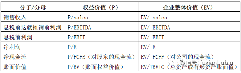 價(jià)值比例在可比企業(yè)與待估企業(yè)的價(jià)值之間建立了一座橋梁,能夠更好的反映價(jià)值,則取決于選取價(jià)值比率的關(guān)鍵。目前常采用的價(jià)值比率類型主要包括如下幾類: