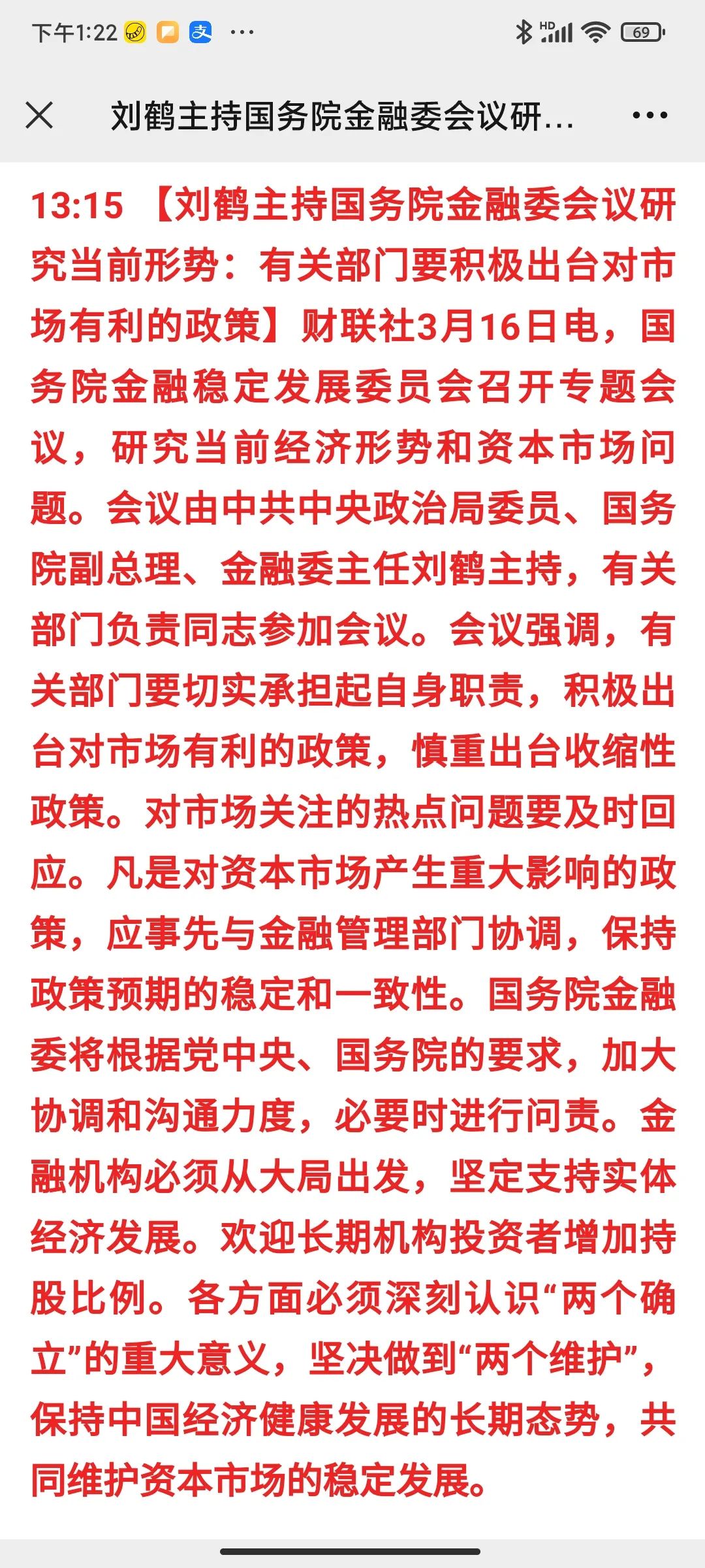 寫到這時,炸天團突然被一條消息刷屏了:劉鶴主持金融委會議研究當前形勢。
