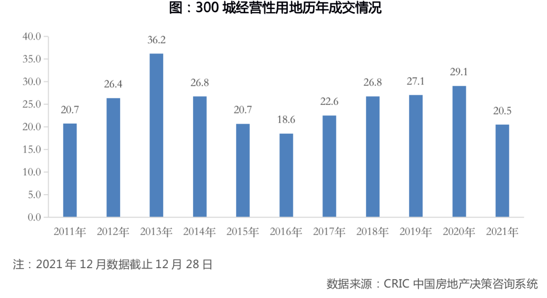 截止到12月28日,全國300城土地市場成交建筑面積20.5億平方米,較2020年同期下降了22%。與土地成交規(guī)模變動走勢一致,成交金額較去年同期也明顯收縮,全國土地總成交金額62494億元,同比去年同期下降了10%。