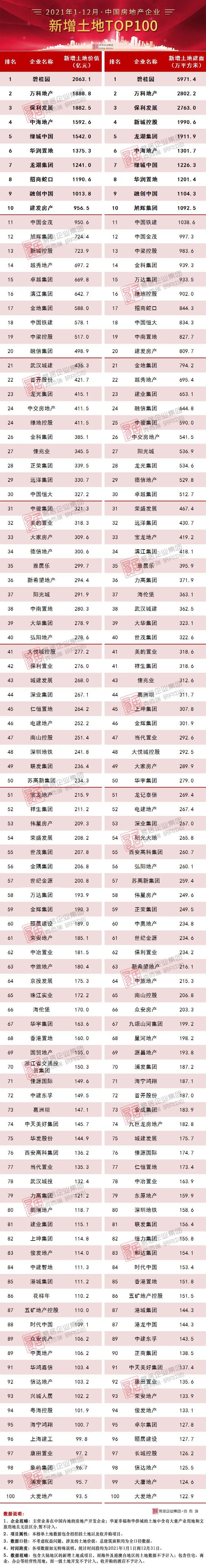 2021年,新增貨值百強門檻為214.4億元,同比微降3%,新增土地價值、新增土地建面的百強門檻分別為83億元和152.8萬平方米,其中金額同比上升13%,建面則降20%。新增土儲超過2000億的房企共有10家,較去年減少6家,可見在現(xiàn)金流持續(xù)吃緊的壓力下,企業(yè)投資力度明顯收緊。