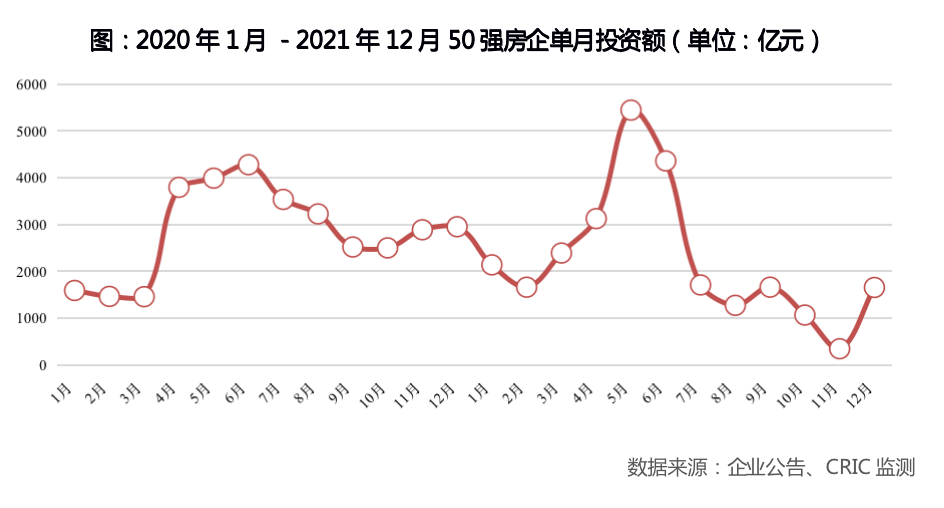 從銷售50強房企單月投資力度的變化來看,全年呈現(xiàn)“先揚后抑”的走勢。5-6月份是房企拿地的窗口期,在首輪集中供地的帶動下,50強房企單月投資額最高達到5445億元,創(chuàng)2020年以來新高,也是全年投資力度最高峰。