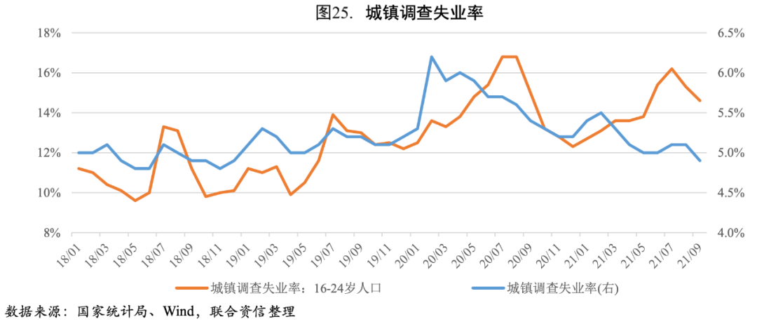 2021年以來就業(yè)形勢總體基本穩(wěn)定,調(diào)查失業(yè)率呈逐季穩(wěn)中有降的趨勢。前三季度,城鎮(zhèn)新增就業(yè)1045萬人,完成全年目標(biāo)任務(wù)的95%;城鎮(zhèn)調(diào)查失業(yè)率均值為5.2%,低于全年5.5%左右的預(yù)期目標(biāo)。從結(jié)構(gòu)看,重點群體就業(yè)情況在三季度出現(xiàn)改善,其中16-24歲城鎮(zhèn)人口失業(yè)率結(jié)束自2021年1月以來的連續(xù)上升,自8月開始出現(xiàn)下降;截至三季末,農(nóng)村外出務(wù)工勞動力總量同比增長2%,基本恢復(fù)至疫情前2019年同期水平。就業(yè)形勢基本穩(wěn)定的同時,依然存在新增就業(yè)人數(shù)完成進度慢于往年同期的總量壓力,以及部分群體失業(yè)率依然較高和沿海一些地區(qū)缺工的結(jié)構(gòu)性矛盾,四季度保持就業(yè)穩(wěn)定的壓力依然存在。