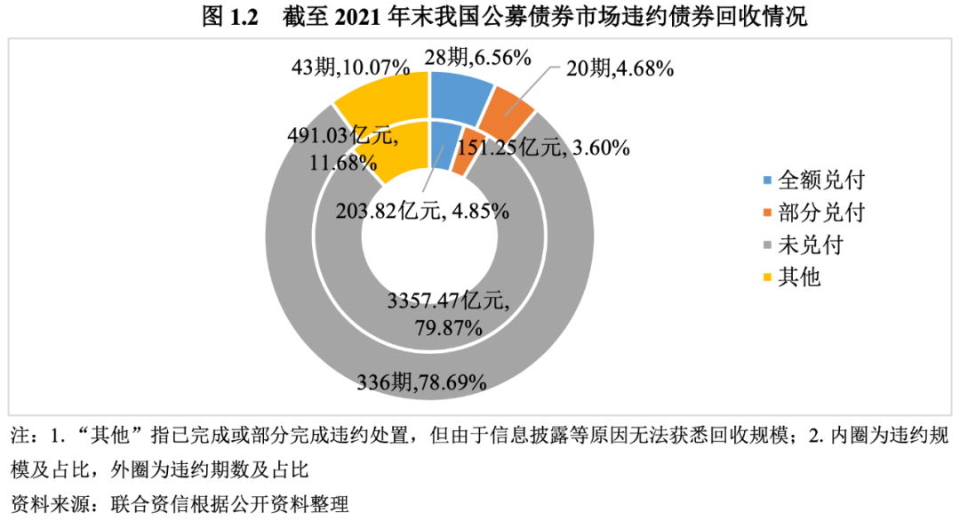 一、2021年我國公募債券市場違約處置與回收整體情況