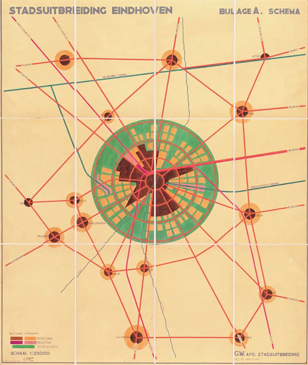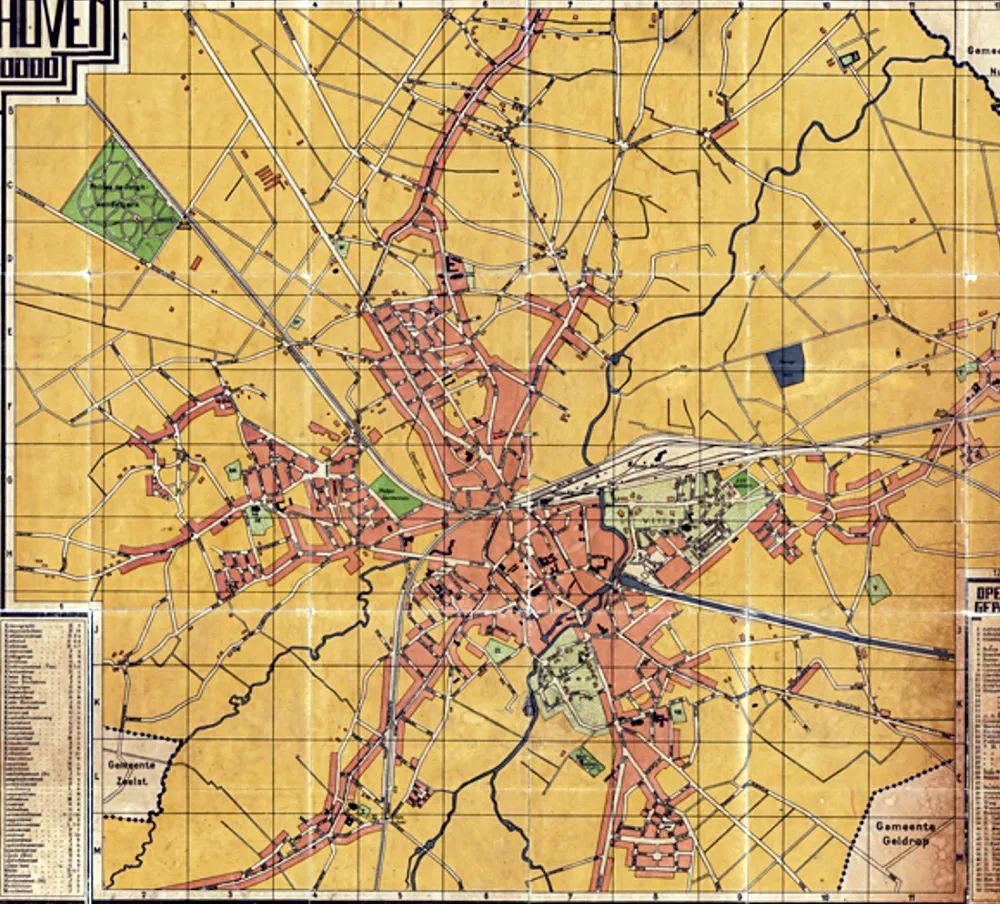 ▼ 1920年代,埃因霍溫已形成放射狀城市結構(來源:Wikipedia)