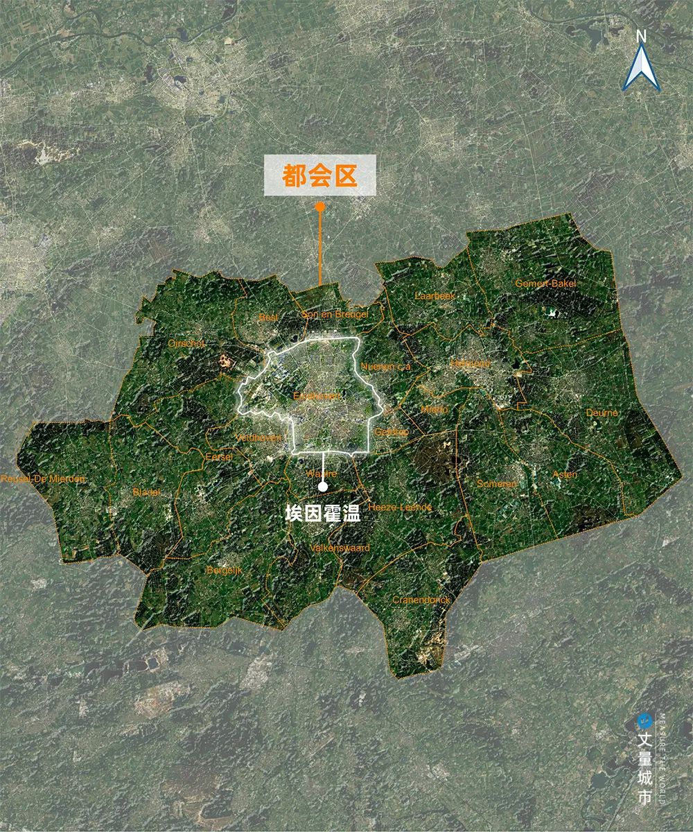 埃因霍溫在1990年的轉型階段,就考慮過發展腹地問題,于1993年聯合周邊的20座城市建立了埃因霍溫都會區(SRE),都會區面積約1,457平方公里,人口近80萬。