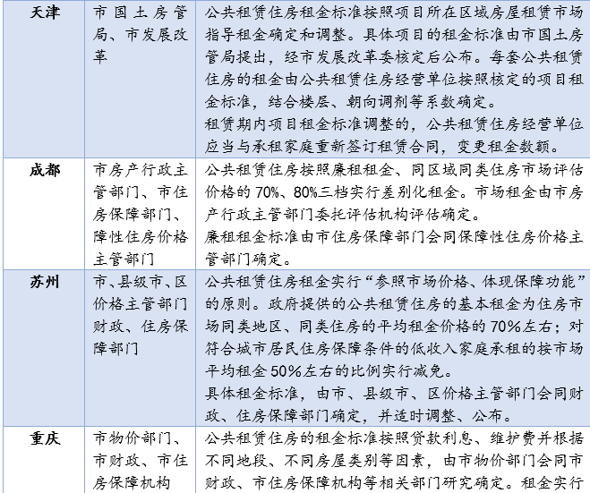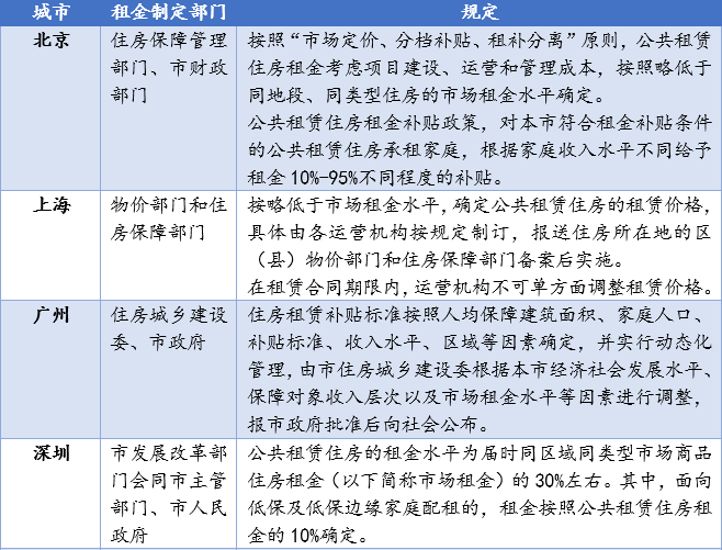 下表列舉了幾個熱點(diǎn)城市租金規(guī)定情況: