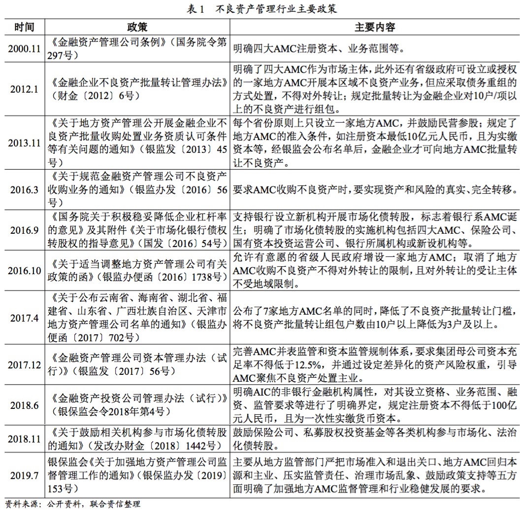 2019年以來,行業(yè)監(jiān)管趨嚴,重點轉(zhuǎn)向防范行業(yè)風險和市場糾偏,引導不良資產(chǎn)管理公司回歸本源和主業(yè),有利于行業(yè)規(guī)范、健康發(fā)展。