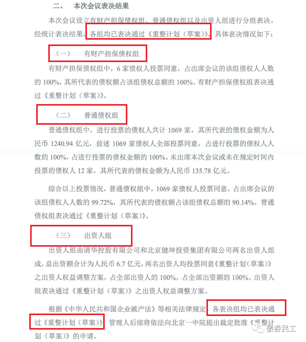 3、2021年12月29日,紫光集團有限公司(公告,有財產擔保債權組、普通債權組和出資人組分別表決,均已經通過了《重整計劃(草案)》。目前,該重整計劃尚需經北京一中院批準。紫光集團有限公司歷史最高主體信用等級為AAA,目前最新主體信用等級為C,已經實質違約債券只數為9只,已經實質違約債券金額為140.46億元。