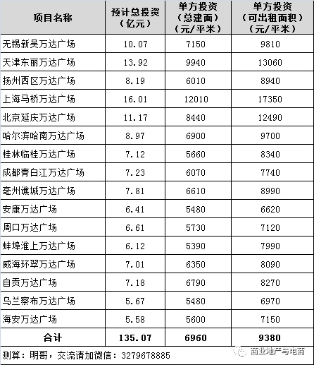 截至2019年12月末,在建萬達(dá)廣場共有16個(gè),分布于北京、上海、天津、哈爾濱、桂林等地,規(guī)劃總建筑面積合計(jì)194.1萬平方米,總可租面積為144萬平方米,總投資額合計(jì)135億元。