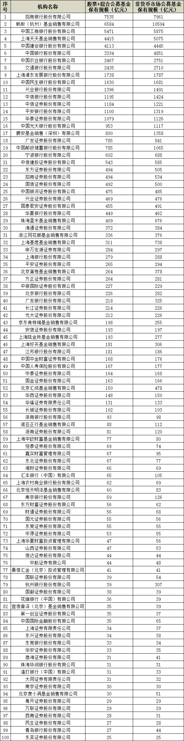 7月30日,中國基金業(yè)協(xié)會公布了2021年二季度末基金代銷機構保有量前百強機構。和一季度數(shù)據相比,頭部的十家機構地位穩(wěn)固未有變化,只是名次上略微有所變動。