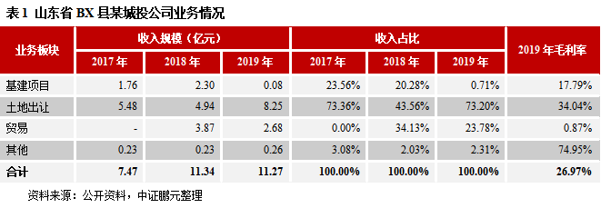 本文通過案例分析的形式揭示弱資質(zhì)城投公司的業(yè)務(wù)特征,總結(jié)起來有三個明顯的特征:(1)將貿(mào)易業(yè)務(wù)作為市場化業(yè)務(wù)的重心,以求快速擴(kuò)充收入規(guī)模;(2)涉足擔(dān)保、典當(dāng)、小貸、保理、融資租賃等金融類業(yè)務(wù),但往往經(jīng)營不善;(3)略顯神秘的“其他業(yè)務(wù)”,收入規(guī)模占比較高,可能還伴隨毛利率異常。需要提示的是:本文總結(jié)出的幾大業(yè)務(wù)特征,適用于對弱資質(zhì)城投公司的初篩,不能直接用于弱資質(zhì)城投公司的認(rèn)定。