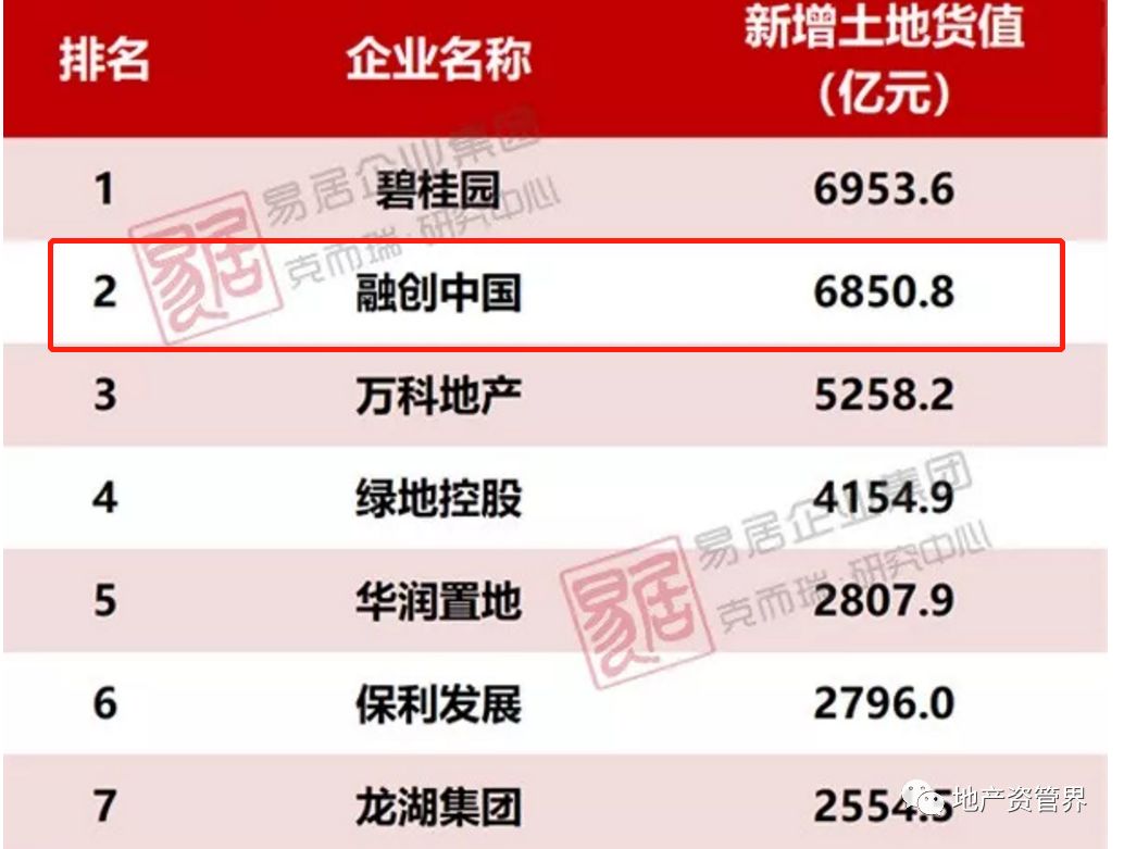 依靠大手筆的收購(gòu),融創(chuàng)新增土地儲(chǔ)備也急速膨脹,在克而瑞發(fā)布的1-11月房企新增貨值排行榜中,融創(chuàng)1-11月累計(jì)新增土地貨值達(dá)到6850.8億,僅次于碧桂園,位列第二位,但較第三位的萬(wàn)科多出1000多億。