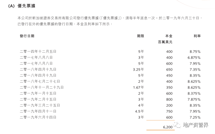 首先,是優(yōu)先票據(jù)。融創(chuàng)于新加坡證券交易所有限公司發(fā)行優(yōu)先票據(jù),截止2019年6月30日,已發(fā)行在外的優(yōu)先票據(jù)本金累計(jì)為62億美元。據(jù)一位新加坡債券從業(yè)人士表示,融創(chuàng)的美元債在市場(chǎng)上很搶手,“最近幾筆都是超發(fā),投資者基本要搶額度。而且,相比一些閩系房企,融創(chuàng)的發(fā)債利率算是低的。”