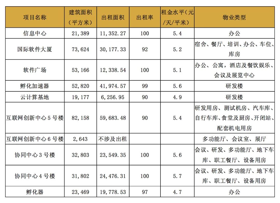 表12 中關村軟件園公司持有園區資產情況