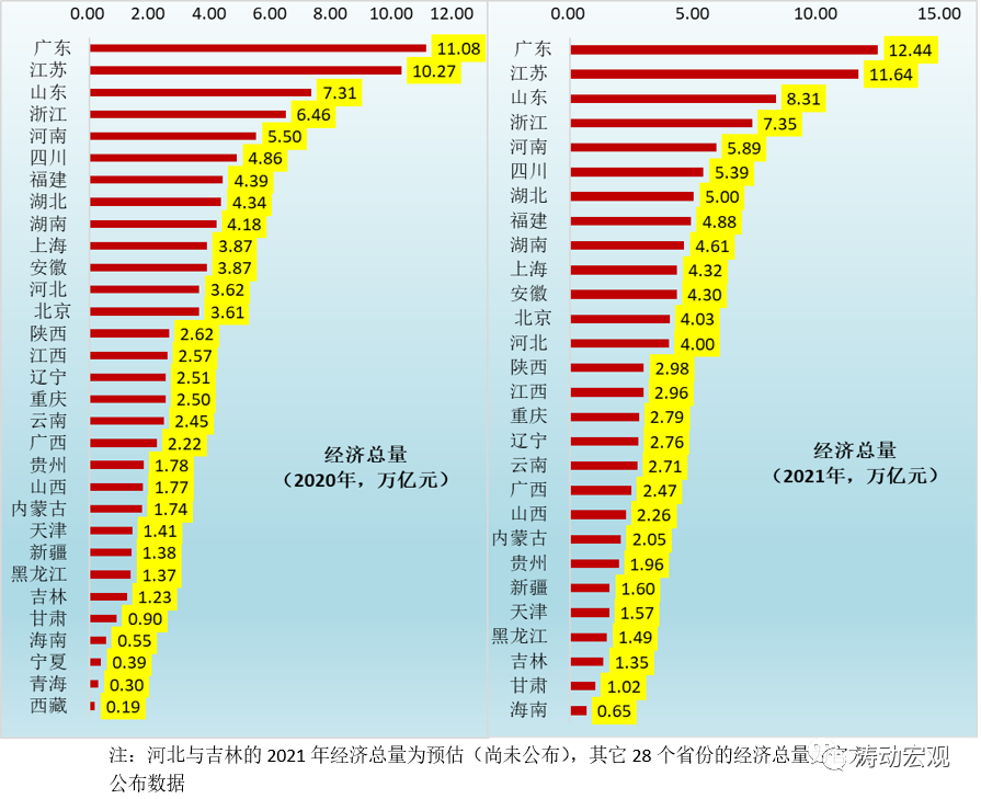 (2)河北的經濟總量數據雖然沒有公布,但考慮到其2021年經濟增速僅為6.50%,低于北京的8.50%和安徽的8.30%,因此預計2021年河北經濟總量僅有4萬億元左右,低于北京的4.03萬億和安徽的4.30萬億元。
