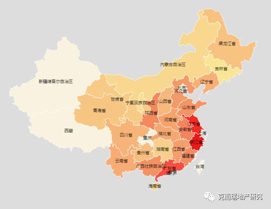 備注:顏色越深代表投資熱度越高,此圖僅監(jiān)測(cè)TOP50房企投資省份(不含港澳臺(tái)三地)