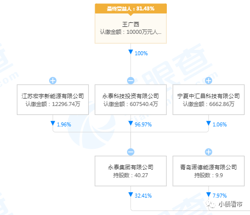 從股權結構上看,永泰能源的控股股東為永泰集團,持股比例為32.41%,穿透后公司實控人為自然人王廣西。