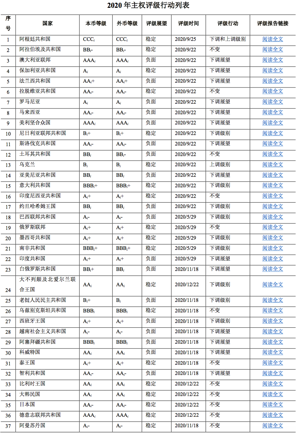 ?阿根廷:2020年4月長期本、外幣信用等級由CCCi下調(diào)至Ci,2020年9月長期本、外幣信用等級由Ci上調(diào)至CCCi,評級展望為“穩(wěn)定”