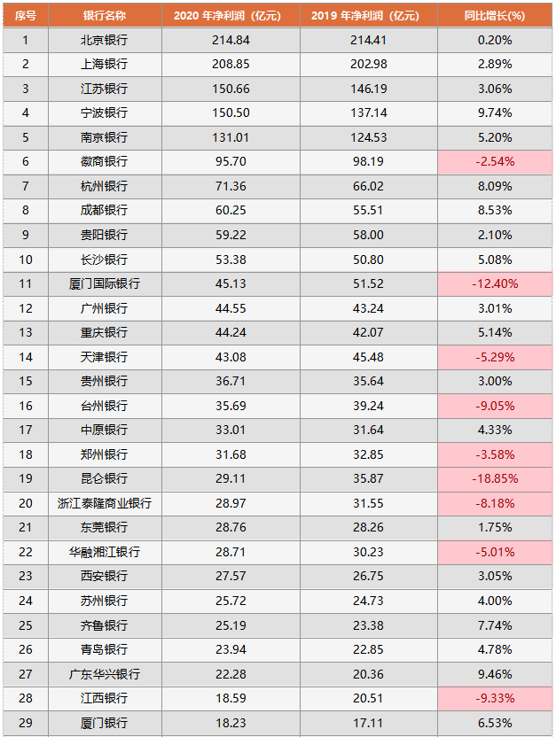 (一)百億級凈利潤的5家城商行排名解讀